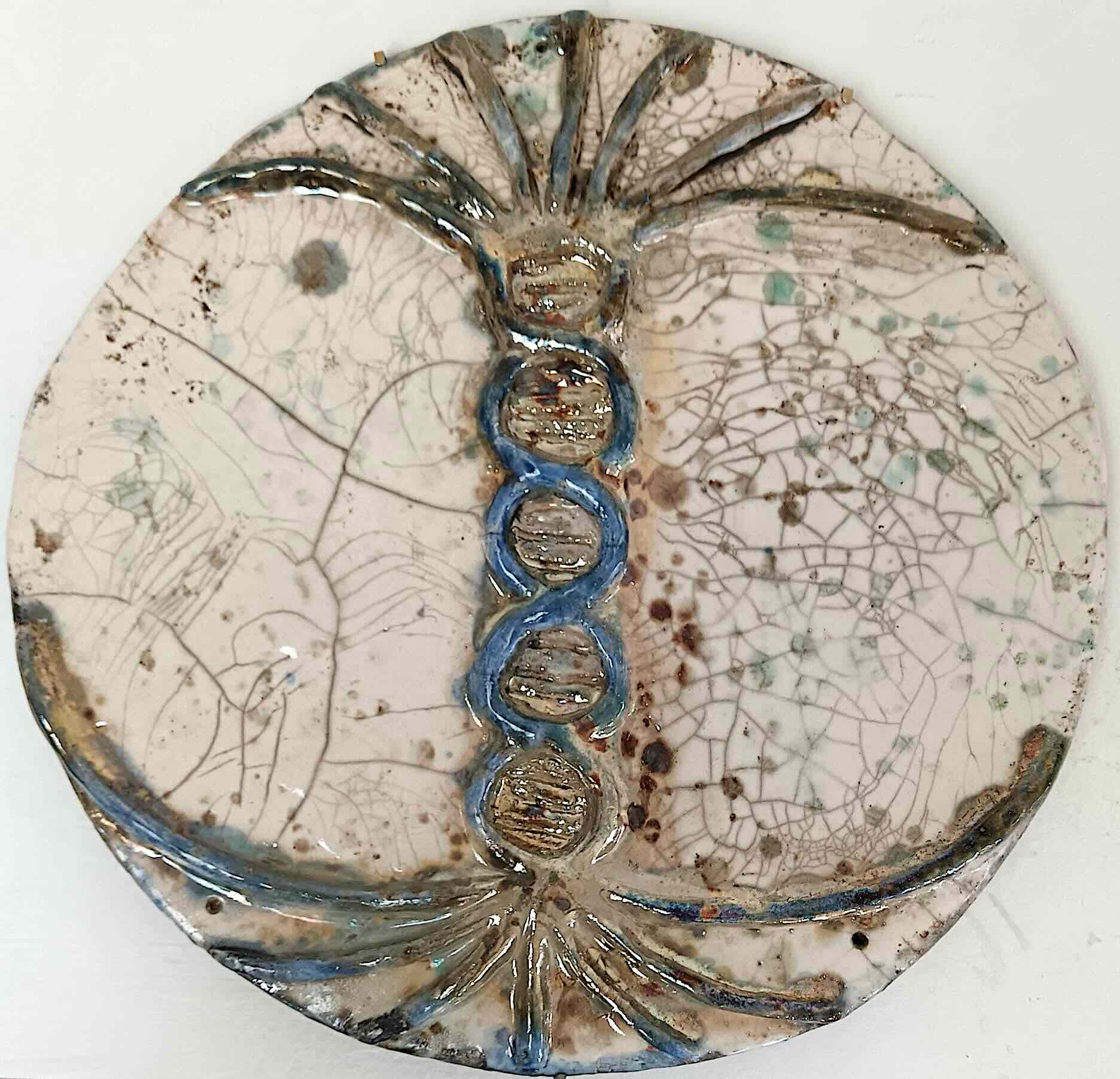 Nelle sue forme circolari, nei moduli cellulari, nelle linee che evocano alberi, radici, membrane, si riconosce una tensione costante tra il microcosmo e il macrocosmo. I piatti si trasformano in mappe, gli assemblaggi in costellazioni viventi. Ogni opera conserva la memoria del proprio farsi: la tensione del fuoco, il respiro della terra, il brivido dell’improvviso raffreddamento. La tecnica, qui, non illustra ma rivela; non rappresenta, ma lascia emergere.